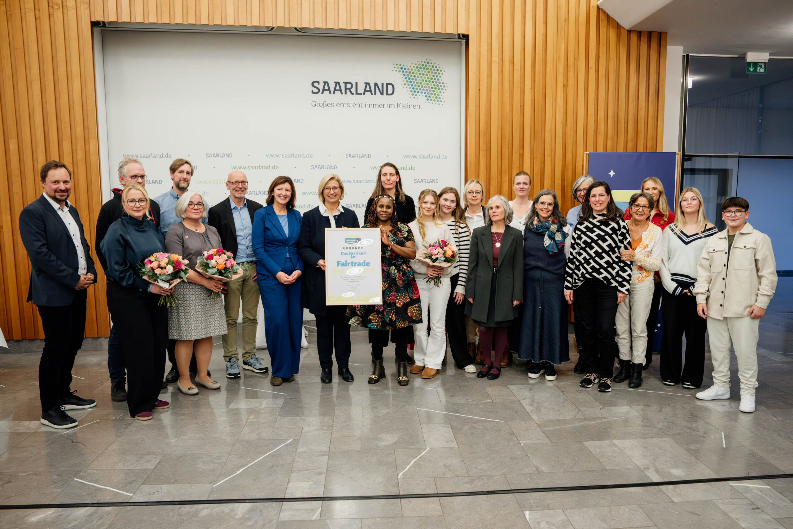 Seit Freitag, dem 7. November, darf sich das Saarland offiziell Fairtrade-Bundesland nennen – eine Auszeichnung, die es so in Deutschland noch nicht gegeben hat. „Als erstes Bundesland beweist das Saarland, dass sozialer und ökologischer Wandel auch auf Landesebene gestaltet werden kann“, erklärt Ministerpräsidentin Anke Rehlinger. „Fairer Handel geht uns alle an und im Saarland nehmen wir diese Verantwortung ernst“, so Rehlinger im Rahmen der Auszeichnungsfeier. Die saarländische Ministerin für Bildung und Kultur und Vorsitzende der Steuerungsgruppe faires Saarland, Christine Streichert-Clivot, ergänzt: „Die Saarländerinnen und Saarländer ebenso wie die Landesverwaltung engagieren sich seit vielen Jahren für den fairen Handel. Die Auszeichnung des Saarlandes als erstes FairtradeBundesland beweist, dass das Streben nach globaler Gerechtigkeit für uns als Selbstverständlichkeit im gemeinsamen politischen Handeln verankert ist.“ Im Saarland ist die Entwicklungszusammenarbeit dem Ministerium für Bildung und Kultur zugeordnet – daher verantwortet Streichert-Clivot als zuständige Ministerin auch die Koordination des Engagements für den fairen Handel. Alle Infos auf bildung.saarland.de