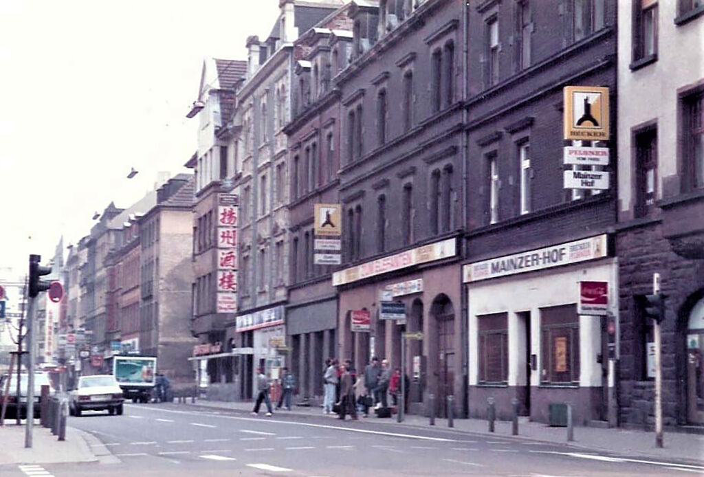 Die Mainzer Straße hat sich stellenweise seit 1984 kaum verändert, nur dass heute keine Zirkuselefanten mehr getränkt werden.