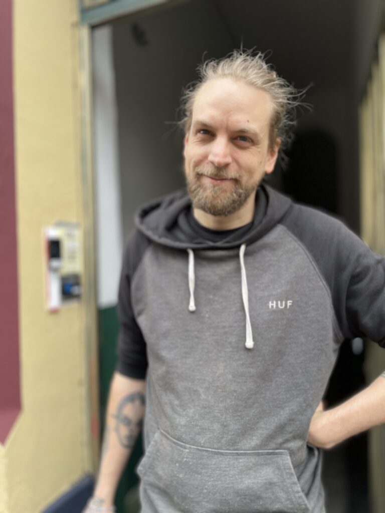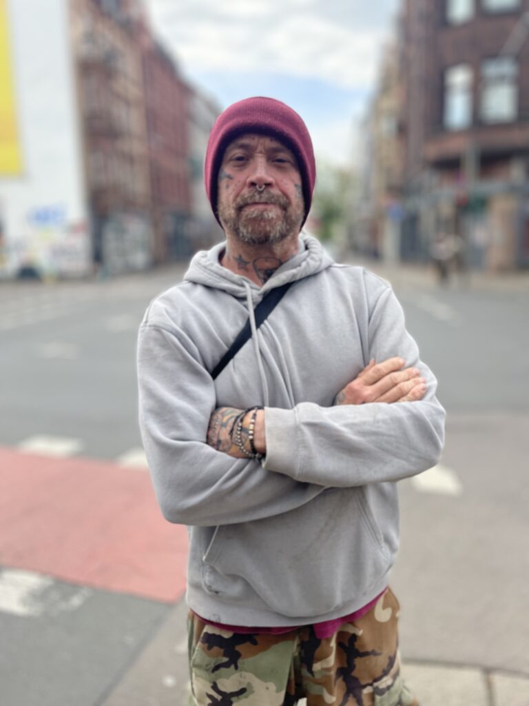 „Ich wohne und arbeite hier in der Mainzer Straße. Die hat sich auf jeden Fall in den letzten Jahren extrem entwickelt, wurde zu einem eigenen Kiez. Also wenn Du guckst, wie viele Restaurants und Läden hier dazugekommen sind, ist das schon eine coole Straße geworden. Egal, was Du essen willst, findet sich hier alles. Ich hab mich hier tätowieren lassen, ich war hier beim Friseur, was willst Du mehr. Ich mein, nicht umsonst fahren die Leute von sonst irgendwo hierher zum Einkaufen.“