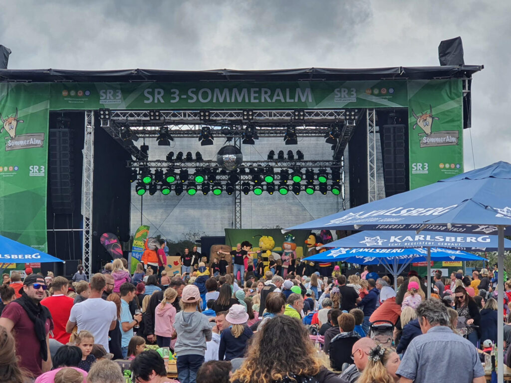 (Blick von der Halde auf den Erlebnisort Reden © Fabian Hoppstädter / Kinderfest SR 3 – SommerAlm © Christina Drumm)